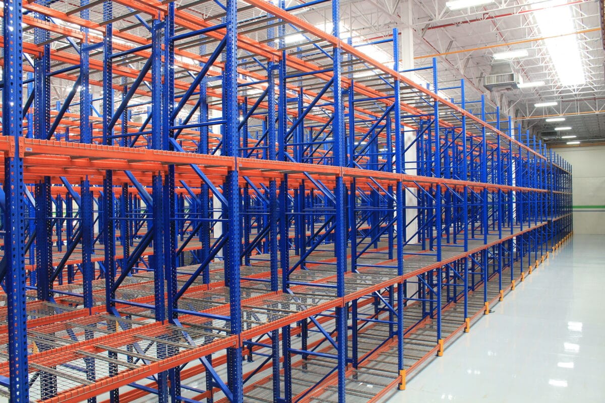 Sistema de racks con doble profundidad que permite almacenar más tarimas en menos pasillos.
