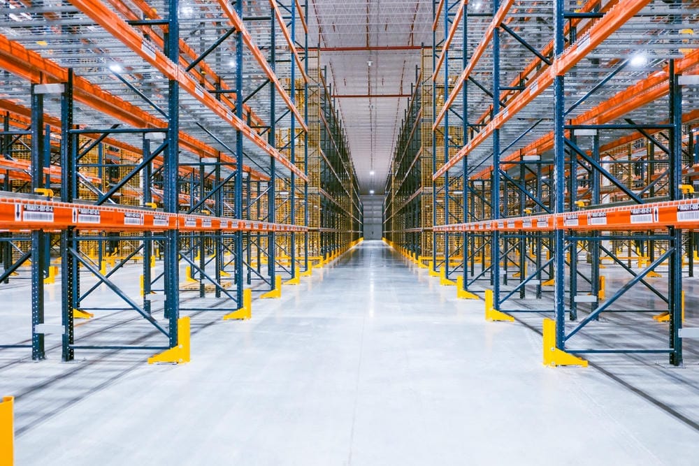 Sistema clásico de racks con pasillos entre cada para que permite acceso directo a cualquier tarima de forma rápida y sencilla.